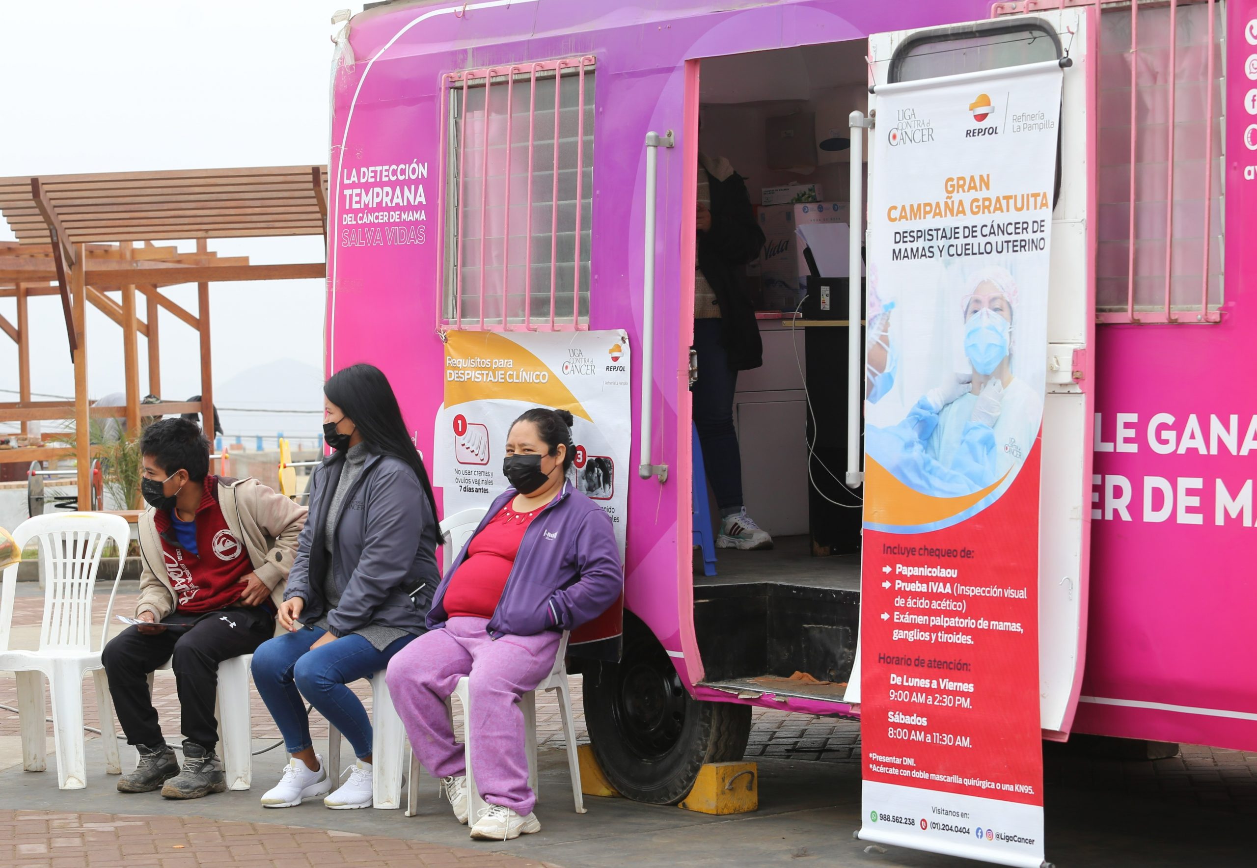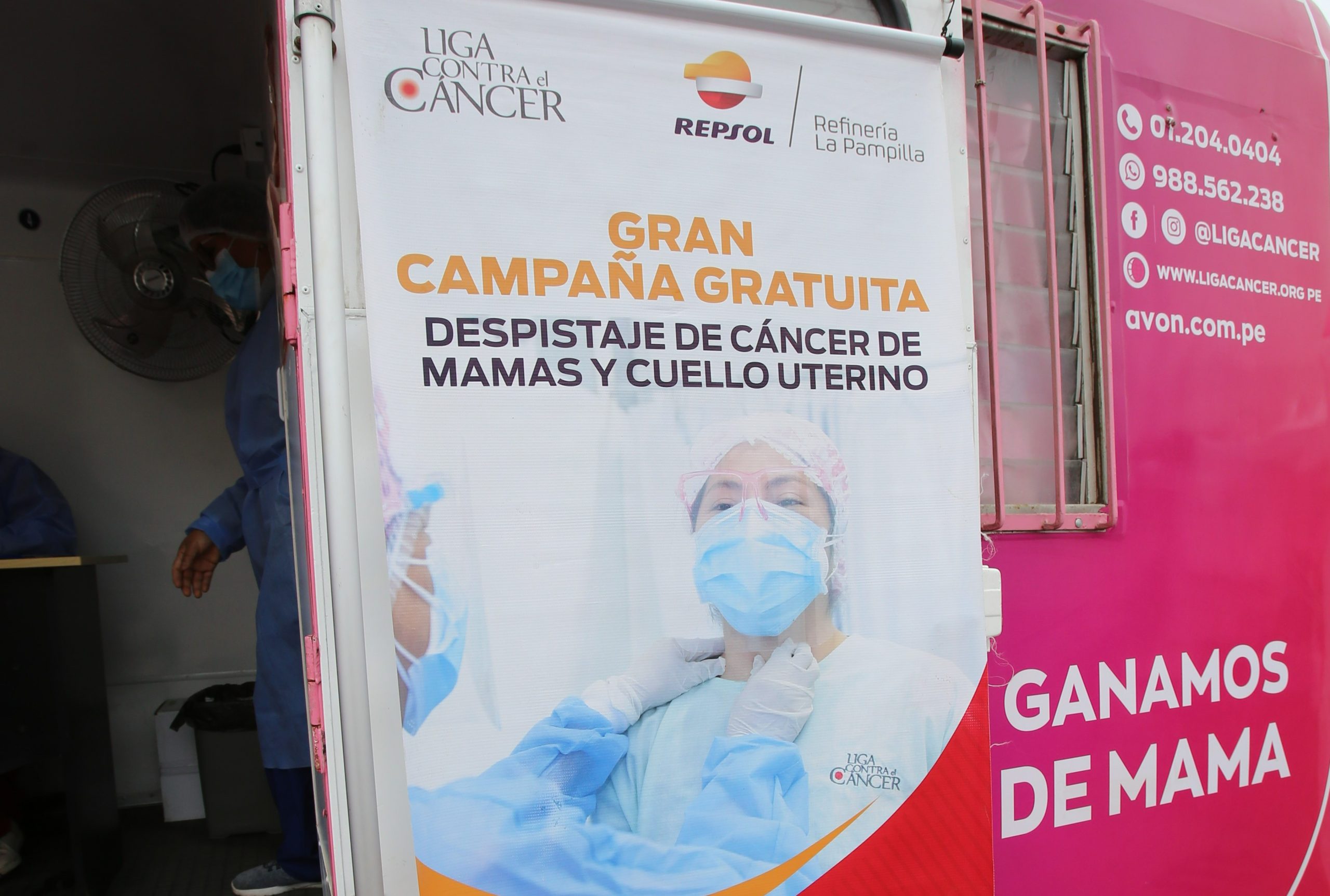 Durante los meses de campaña dos unidades móviles recorren Ventanilla y realizan exámenes clínicos, de mamas, ganglios, tiroides y papanicolaou. Mediante este método de trabajo social, hasta la fecha más de 70,000 mujeres han sido atendidas gratuitamente.